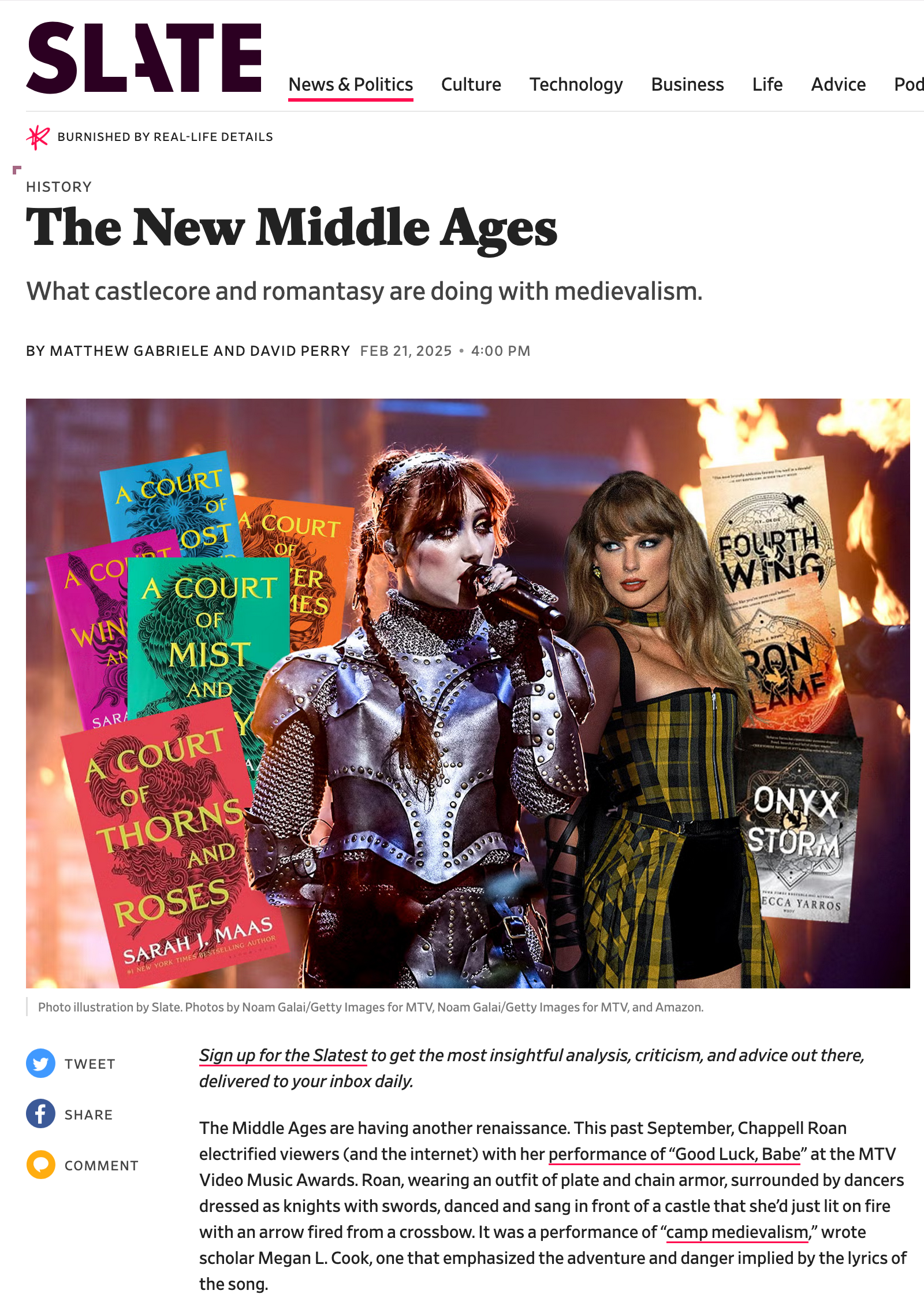 “The New Middle Ages: What castlecore and romantasy are doing with medievalism.” Slate, February 2025.